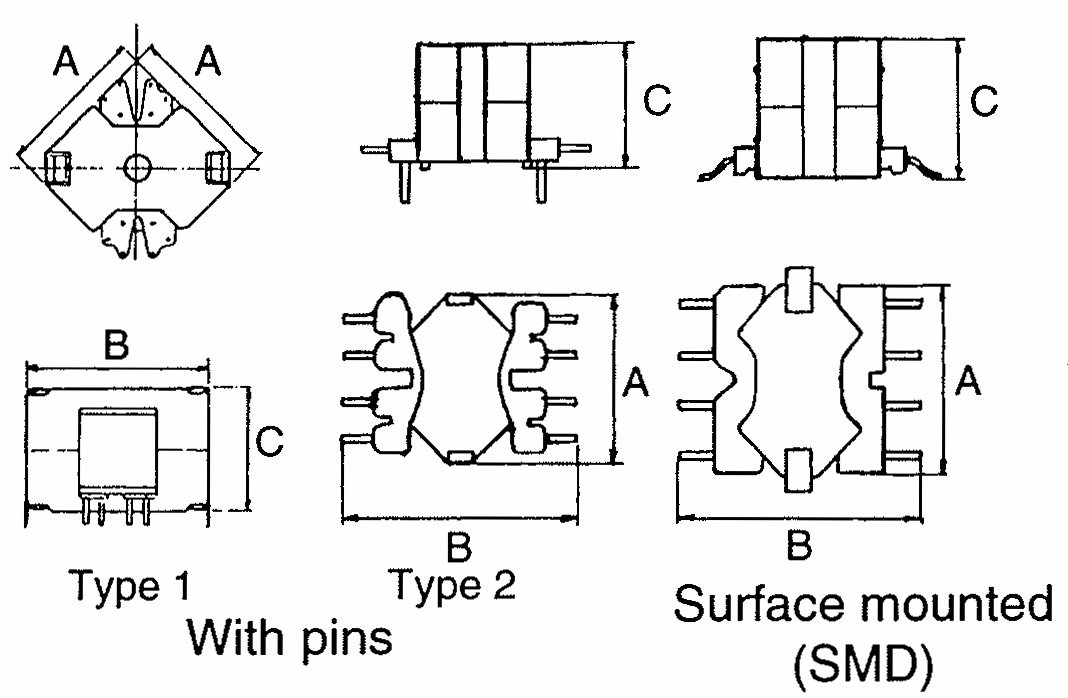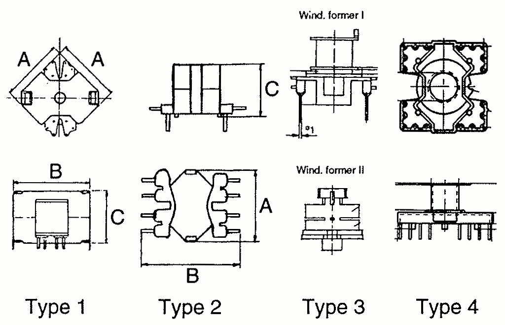 Vanliga ferrittyper är EFD, ETD, EP och RM.
